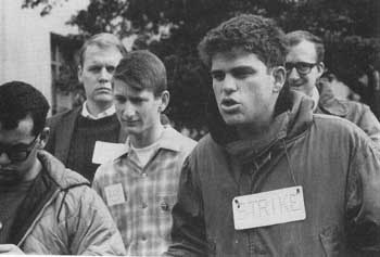 מפגינים מתנועת זכויות האזרח עם כרטיסי ניקוב על צווארם לאות מחאה בברקלי 1964. (התמונה לקוחה מתוך הספר From Counterculture to Cyberculture).