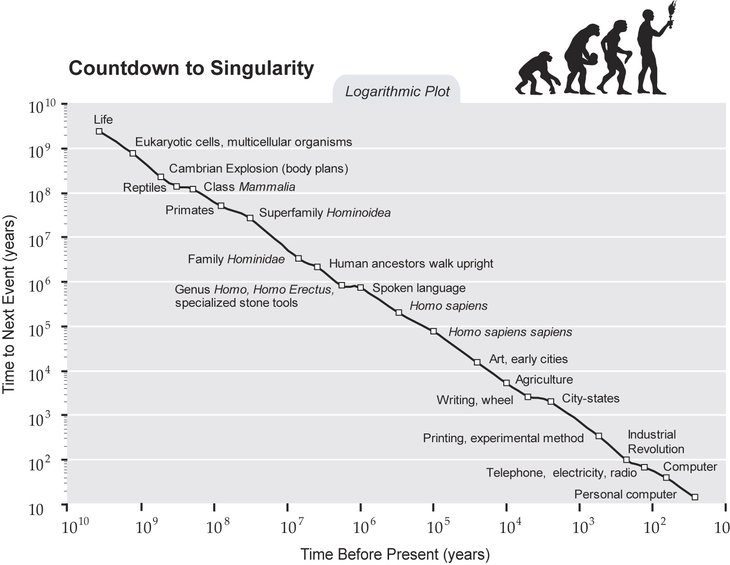 באפריל האחרון חגג חוק מור את חגיגות היובל למאמר המקורי שבו פרסם מייסד חברת אינטל גורדון מור את התחזית שלו שמספר הטרנזיסטורים במעגלים משולבים בעלות נתונה יכפיל את עצמו מדי 18 חודשים. מאז הפכה ההיפותיזה הזו שניפק מור לכמעט חוק טבע בעולם הטכנולוגיה שראה עצמו לעמוד בלוחות הזמנים שקבע החוק. חוק מור הפך לתחזית המגשימה את עצמה, ושהחברות השונות בתחום מתאמצות כדי לעמוד בה. על הדרך הוא הפך גם הבסיס לדת חדשה, דת הסינגולריות שעיקר האמונה הראשון והחשוב ביותר שלה הוא שהטכנולוגיה מתפתחת בקצב אקספוננטיאלי (מעריכי). משמעות הצמיחה המעריכית של הטכנולוגיה היא שאם כח המחשוב מכפיל את עצמו מדי 18 חודשים[1] הרי שמדי 15 שנה יכפיל את עצמו כח המחשוב בצ'יפ פי אלף, מדי 30 שנה יכפיל את עצמו פי מיליון, ומדי 45 שנה פי מיליארד. התוצאה של הצמיחה המעריכית הזו היא שב-2015 אדם מן היישוב מחזיק בכיסו טלפון סלולרי שלו כח מחשוב חזק רבבות מונים מזה שהיה למחשבי הענק העצומים והיקרים לאין שיעור שנדרשו לנאס"א על מנת להביא אדם לירח.