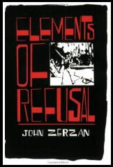 Elements of Refusal ספרו של ההוגה האמריקאי ג'ון זרזאן נכנס ללא ספק לקטגוריה. זרזאן מציג ב–Elements of Refusal משנה אנטי-טכנולוגית מנומקת ומוצקה שיוצאת לא רק כנגד מחשבים או טלוויזיה. על פי משנה זו כל מה שעשה האדם ב-10,000 השנה האחרונות הוא טעות אחת גדולה: השפה האנושית, השימוש במספרים, הזמן, החקלאות ואפילו האמנות.