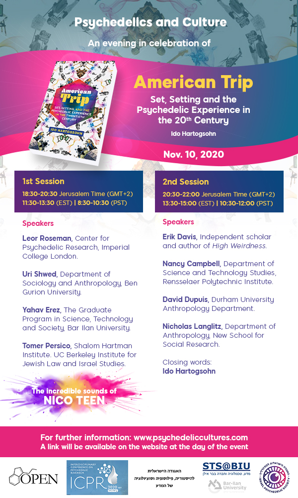 בתקופה שאמריקן טריפ יצא השתעשעתי בחזון לעשות סביבו איזה כנס קטן פסיכדלי קטן עם דגש בינתחומי, שיאגד את החוקרים הישראלים שעוסקים בפסיכדליה מהזווית של עולמות החברה והרוח, ושבדרך כלל נדחקים בכנסים פסיכדלים הצידה לטובת הפסיכיאטרים וחוקרי המח. יחד עם נח עפרון, שהנחה את הדוקטורט שלי, תכננו אירוע פסיכדלי צבעוני באולם הכי גדול שיש לאוניברסיטת בר אילן להציע.
