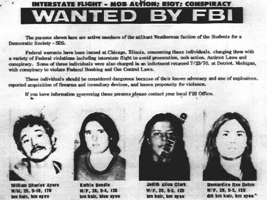 בסוף שנות השישים, בתקופה בה הרגה ארה"ב אלפי ורבבות אזרחים ויאטנמים מדי חודש, התגברה בתוך השמאל הרדיקלי האמריקאי תחושה שעצרות וצעדות השלום, לא משנות דבר, ושאין ברירה אלא לנקוט בפעולה רדיקלית שתמשוך את הקרקע מתחת לכללי המשחק המקובלים. או כפי שאמרה זאת אז ברנדין דוהרן, עורכת דין בעברה שהפכה למנהיגה המפורסמת ביותר של המחתרת: "אי אפשר להיות מחויבים לאי-אלימות מתוך החברה האלימה ביותר בהיסטוריה".